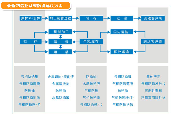 Solution: internal gas phase anti rust film sealed package, internal gas phase rust preventive paper, exposed metal coating type rust inhibitor oil