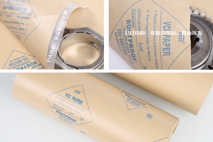 2.采用該產(chǎn)品包裝后,含浸在紙內(nèi)的氣相緩蝕劑在常溫下緩慢氣化、揮發(fā),形成緩蝕劑蒸汽,該蒸汽在金屬表面吸附并形成分子級(jí)保護(hù)膜,從而起到優(yōu)良的氣相防銹保護(hù)作用,同時(shí)在接觸金屬時(shí)還能起到優(yōu)異的接觸防銹效果。